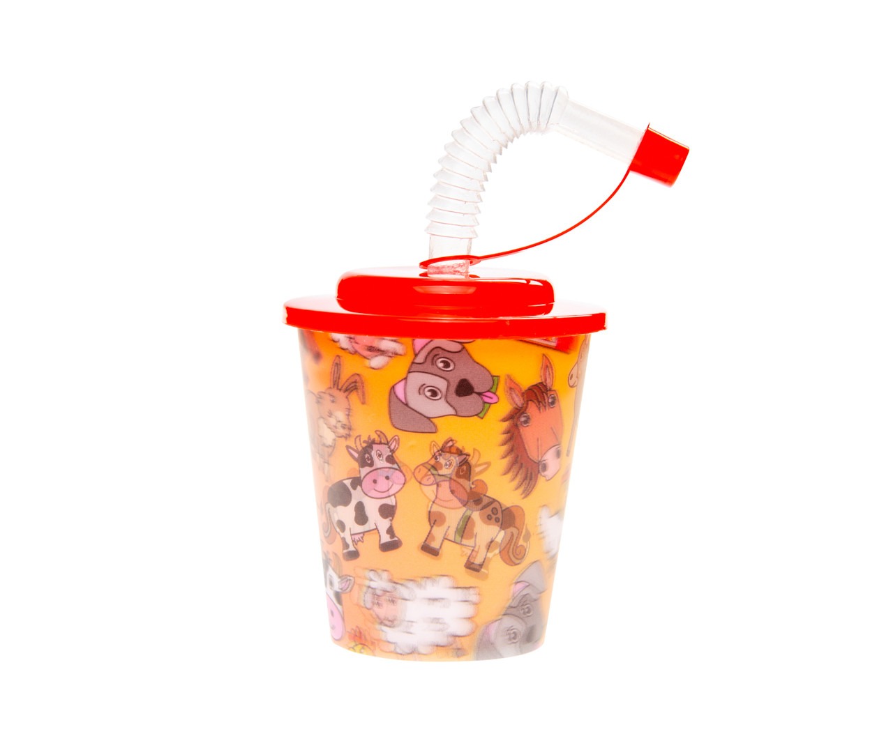 Landelijke boerderijdierenbeker met rietje