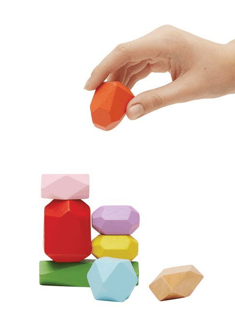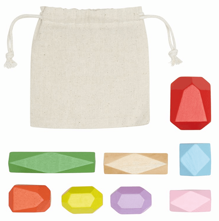 Behendigheidsspel EACH OTHER: bestaande uit 8 kleurrijke houten speelstukken, in een milieuvriendelijke katoenen tas.