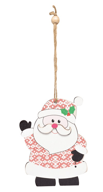 Cadeau / boomhanger WOODEN CLAUS : Baard en neus in 3D-look, met jute lint om op te hangen.