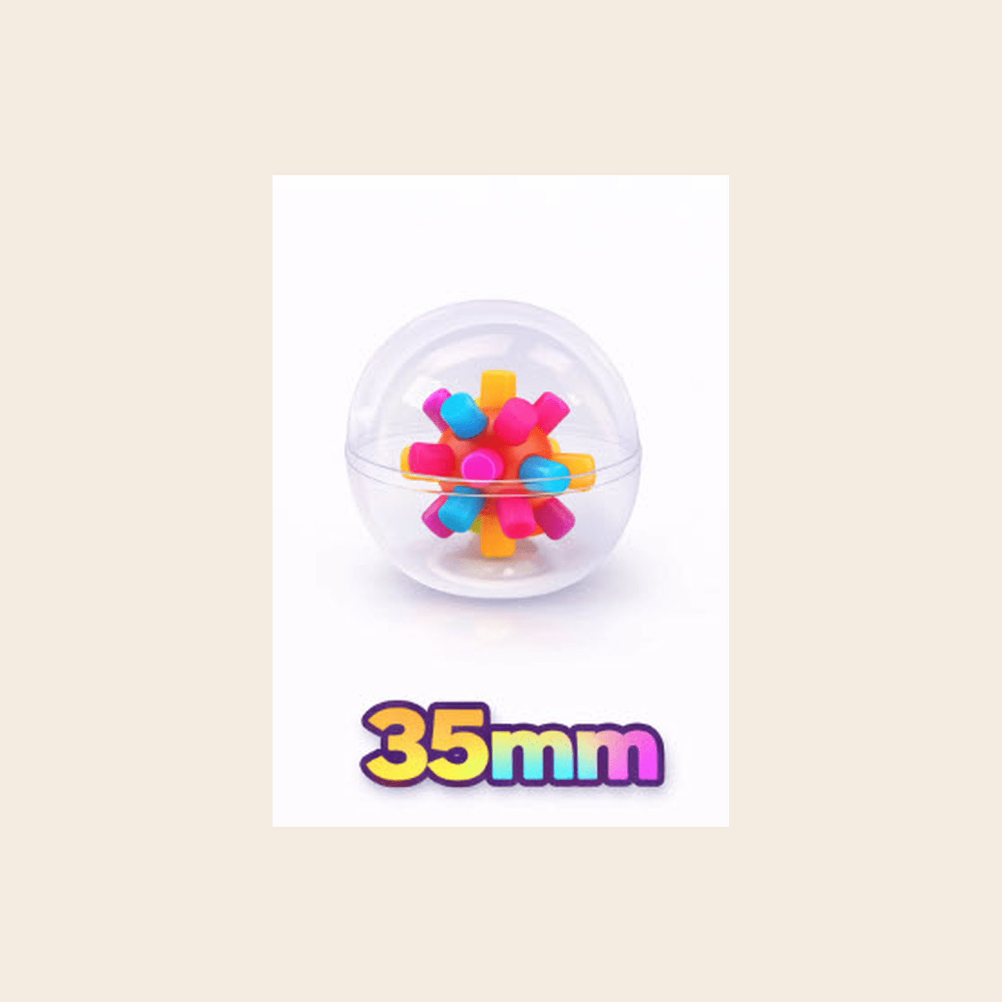 Deze 35mm capsule bevat zachte burr balls met een grappige look & feel en trekt direct de aandacht in elke vending- of actieopstelling. Ideaal voor knijp- en speelplezier in een handomdraai. Formaat: 35mm.