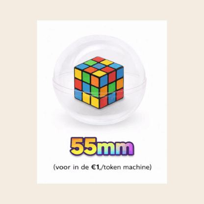 Deze 55mm capsule bevat mini puzzelkubussen voor eindeloos draaien en oplossen en trekt direct de aandacht in elke vending- of actieopstelling. Een tijdloze klassieker die altijd blijft hangen. Formaat: 55mm. deze capsule pas perfect in de vendingmachine van Bellus Toys B.V. met een €1,-/token mechanisme!