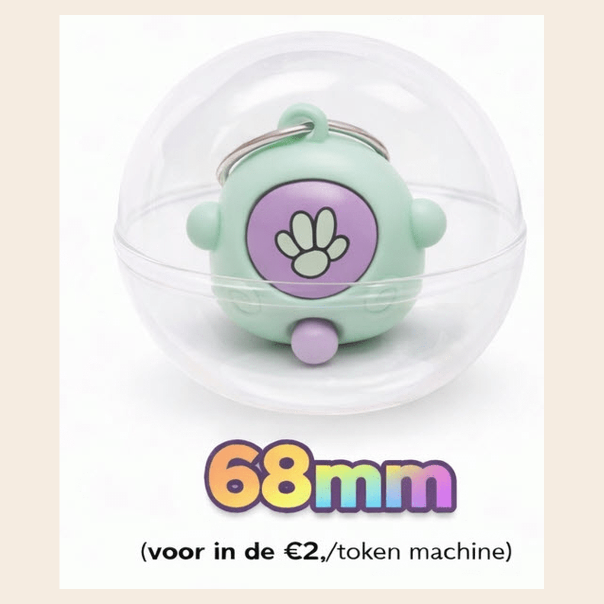 Deze 68mm capsule bevat een vrolijke selectie sleutelhangers die elke capsule tot een leuke verrassing maken en zorgt direct voor plezier bij het openen. Ideaal voor sparen, weggeven of als impulsaankoop. Formaat: 68mm. deze capsule pas perfect in de vendingmachine van Bellus Toys B.V. met een €2,-/token mechanisme! Leverbaar vanaf medio februari 2026. Bestel nu snel dit leuke, nieuwe item! Wij reserveren deze dan voor je/jullie en leveren dit direct uit, na binnenkomst bij ons.