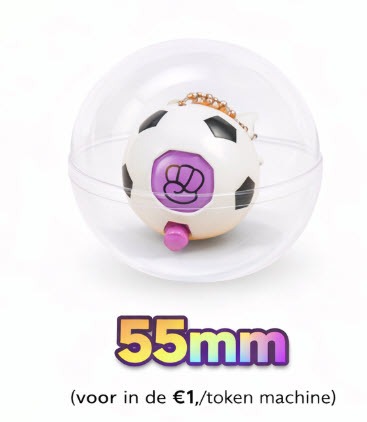 Deze 55mm capsule bevat sportieve voetbal-sleutelhangers die altijd populair zijn bij kinderen en zorgt direct voor plezier bij het openen. Perfect voor jonge fans en sportieve vendingconcepten. Formaat: 55mm. deze capsule pas perfect in de vendingmachine van Bellus Toys B.V. met een €1,-/token mechanisme!