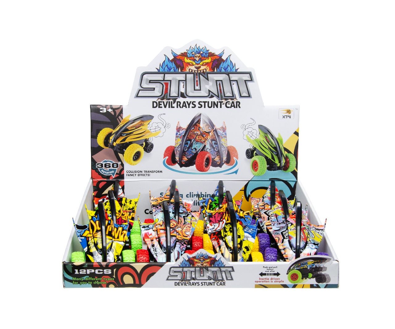 Ontdek de wereld van snelheid en stijl met de gedurfde graffiti stuntracer. Met afmetingen van 12×9.5×8 cm biedt deze speelgoedauto ongekende racesensaties en visueel spektakel. Perfect als aantrekkelijke giveaway voor kindvriendelijke plekken zoals scholen en tandartspraktijken. Bellus Toys verrijkt jouw assortiment met unieke speelmogelijkheden.