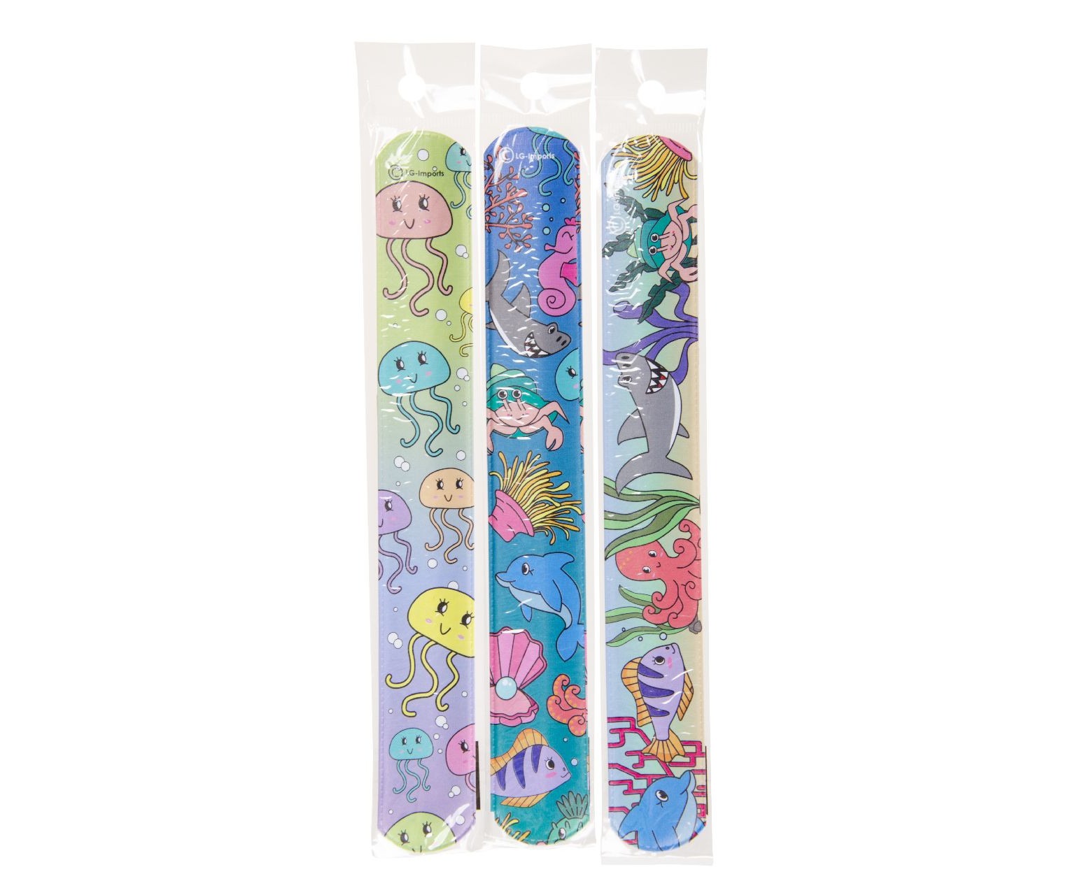 Duik in een onderwateravontuur met deze betoverende klaparmband met zeedieren van Bellus Toys. Met een afmeting van 22×3 cm zijn deze polsbanden niet alleen prachtig versierd, maar ook ideaal als vrolijke giveaway voor kindvriendelijke horecagelegenheden en recreatieparken. Laat elk kind de magie van de oceaan ontdekken!