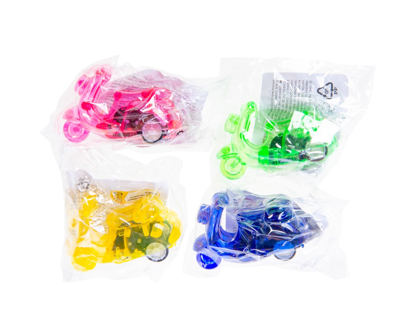 De vrolijke mini scooter van Bellus Toys is een uitmuntend klein speeltje dat perfect is voor elke kindvriendelijke omgeving. Met een compacte grootte van 5.5x3x3 cm past deze scooter gemakkelijk in de hand, ideaal als leuke giveaway na een bezoek aan de tandarts of een kindermenu. Voeg wat speelse vrolijkheid toe aan je assortiment met de kwaliteit van Bellus Toys.