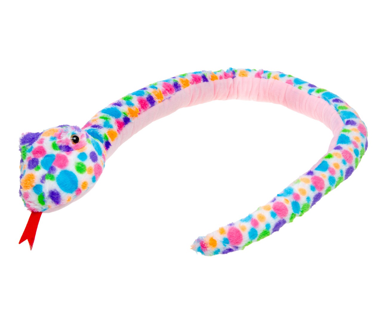 Ontdek de imposante lengte van deze pluche slang. Met een indrukwekkende lengte van 1 meter brengt deze slang levendigheid en speelsheid naar elke kindvriendelijke ruimte. Een ideale keuze voor een verrassend en boeiend weggevertje, perfect voor horeca en tandartspraktijken.
