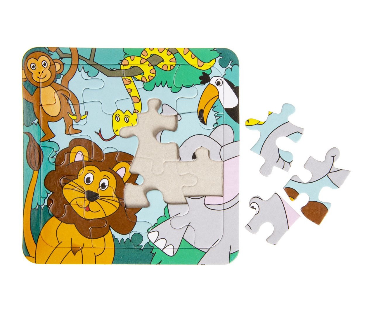 Deze avontuurlijke junglepuzzel met afmetingen van 14×14 cm biedt een boeiende uitdaging voor kinderen. Dankzij zijn compacte formaat en kleurrijke illustraties is het een perfect cadeau of giveaway voor kindvriendelijke horecagelegenheden en tandartspraktijken. Bellus Toys brengt exotisch puzzelplezier naar uw zaak!