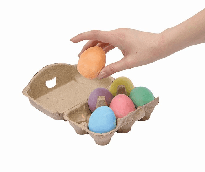 6 krijtjes i.v.v. eieren in verschillende kleuren, in milieuvriendelijke eierdoos