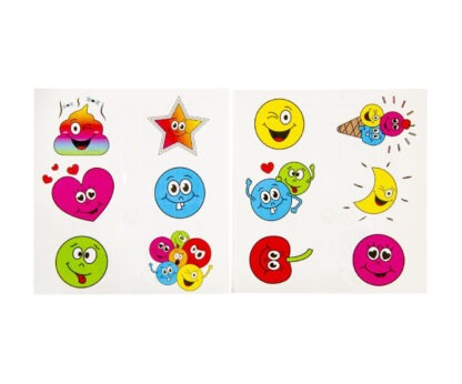 Verblijd kinderen met deze vrolijke tattoovellen van 12×11.5 cm, gevuld met een gevarieerde collectie van vrolijke gezichtjes. Ideaal voor gebruik als opkikkertje of geefmoment in restaurants, tandartspraktijken en recreatieparken. Bellus Toys staat bekend om het maken van kleurrijke en fantasierijke producten die kinderen een lach op hun gezicht bezorgen.